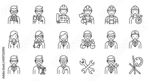 Diverse professional occupations outlined in a clean and modern line art illustration