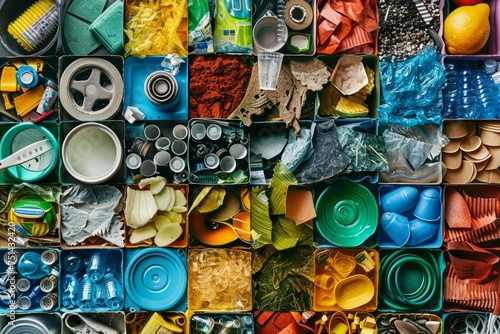 Diverse recyclable materials waste, promoting the concept of reduce, reuse, and recycle for Earth Day