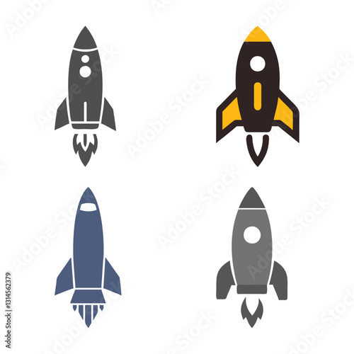 Diverse Rocket Icon Set with Gray, Black, Yellow, and Blue Designs