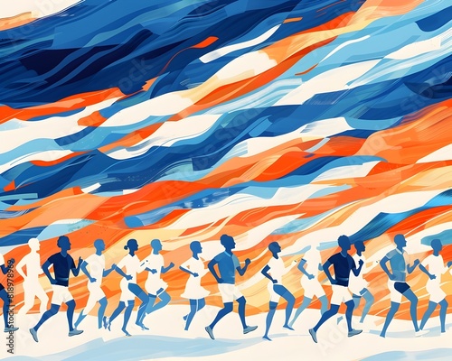 Diverse Runners Competing in an Exhilarating Beach Marathon
