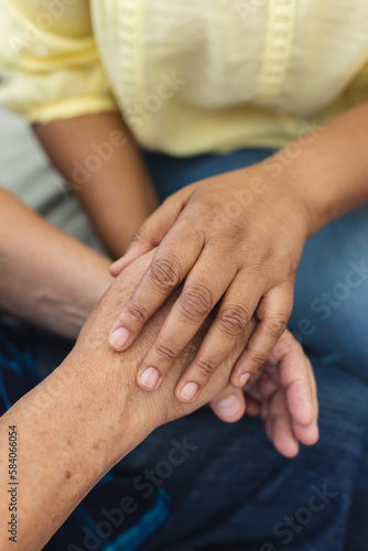 Diverse senior male and female friend holding hands during group therapy session