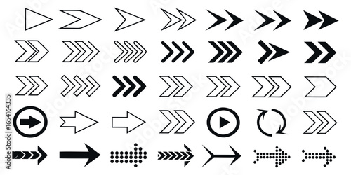 Diverse set of modern arrow icons in various styles, perfect for UI design, web graphics, and data visualization