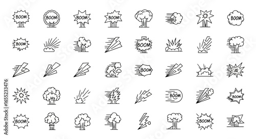 Diverse Set of Tree Explosion and Lightning Icons for Disaster Preparedness and Education Resources, Illustrating Natural Calamities and Environmental Awareness