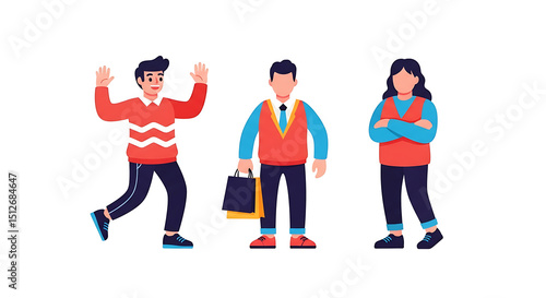 Diverse Shoppers in Illustration: A vibrant illustration showcases three diverse individuals, each with unique expressions and accessories, representing the diverse aspects of shoppers.