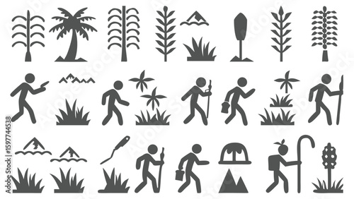 Diverse Silhouettes of Nature and Human Activity Adventure and Outdoor Lifestyle Imagery Collection