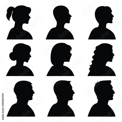 Diverse silhouettes of people profile heads for your creative design needs in modern projects