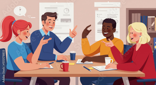 Diverse Team Meeting Collaboration: A Lively Discussion Around a Table