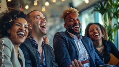 Diverse team of cheerful happy business employees meeting in office, smiling, laughing, celebrating success. Senior leader, boss, teacher posing with group.
