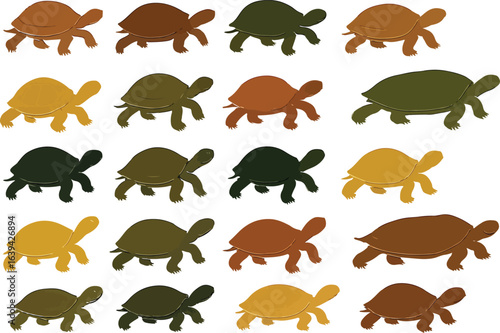 Diverse tortoise poses vector set featuring chinese zodiac year of the horse motifs for festive new year greeting card design isolated on transparent background silhouette