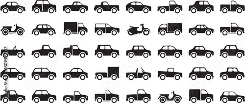 Diverse vehicles black silhouette collection truck
