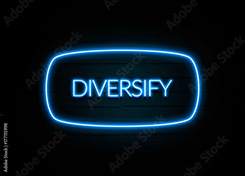 Diversify - colorful Neon Sign on brickwall
