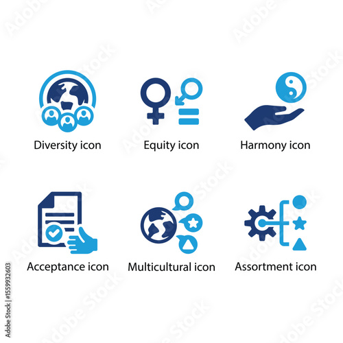 Diversity, Equity, Harmony, Acceptance, Multicultural, Assortment icon