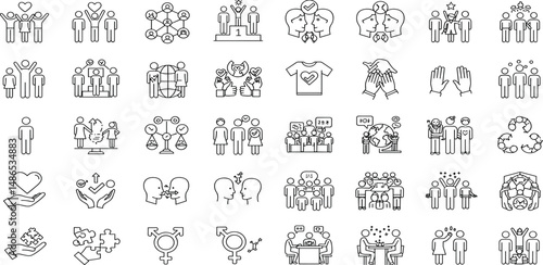 Diversity Line Editable Icons set. Vector illustration in thin line modern style of society related icons: oneness, people, equality, and more.