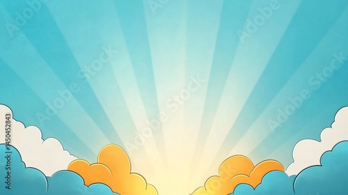 Divine Light and Serenity, a tranquil sky radiating beams of light, symbolizing spiritual peace, ample space for personal messages