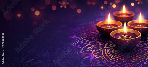 Diwali Celebration with Traditional Diyas and Colorful Festive Lights, backgraund,