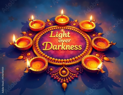 Diwali Festival of Lights Light Over Darkness - Illuminated Diya Mandala