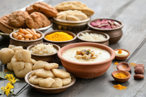 Diwali snacks with sweets and salted on wooden table
