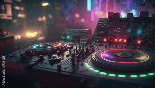 DJ Spinning, Mixing, and Scratching in a Night Club, generative Ai