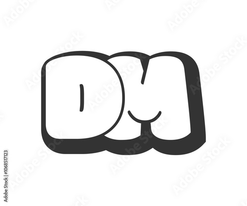 DM logo, bubble comic lettering, rounded in graffiti style black and white silhouette. Trendy preschool D and M letter text for festival party, personal initials, children funky print and web.