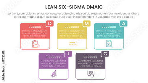 dmaic lss lean six sigma infographic 5 point stage template with big box outline information concept for slide presentation