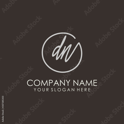 DN initials signature logo. Handwritten vector logo template connected to a circle. Hand drawn Calligraphy lettering Vector illustration.