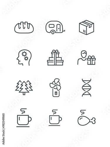 Dna genetic gene, Fan cooler portable, Fir firs tree forest, set of icons for web design, vector illustration