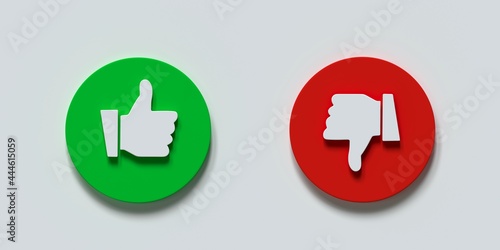 Do and Don't symbols. Thumbs up and thumbs down circle emblems. 3d illustration