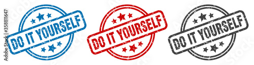 do it yourself stamp. do it yourself round isolated sign. do it yourself label set
