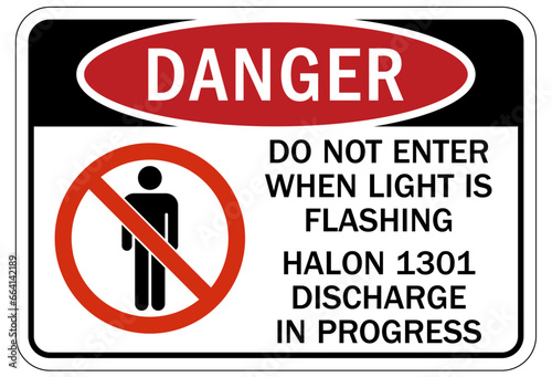 Do not enter when light is flashing sign halon 1301 discharge in progress