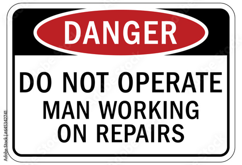 Do not operate machinery sign and labels man working on repairs