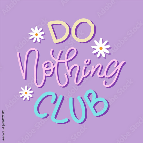 Do nothing club cute handwriting lettering design with chamomiles.