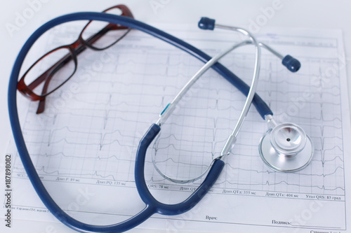 docter workplace with a stethoscope Cardiogram chart with medical table closeup,for heart record