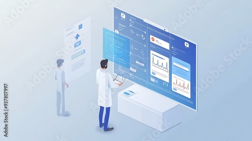 Doctor Analyzing Patient Data on a Large Interactive Screen