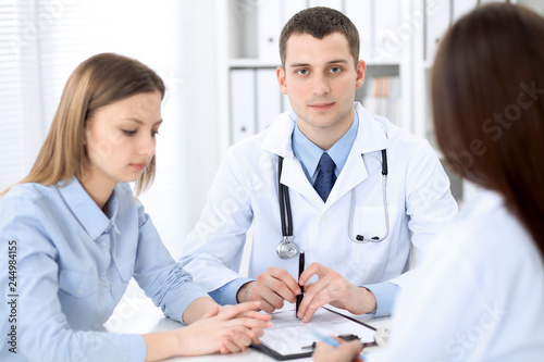 Doctor and patient sitting at the desk. Medicine and health care concept