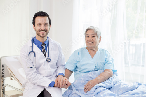 Doctor and early woman smile together at hospital, people with medicine concept.