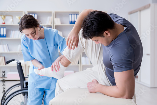 Doctor and patient during check-up for injury in hospital