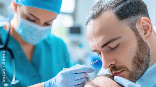 Doctor carefully marking a patient's scalp and hairline in for a medical treatment or procedure