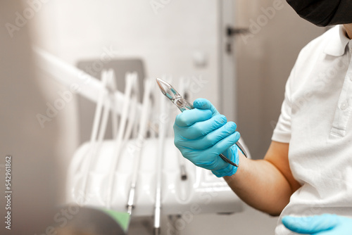 doctor dentist preparing for procedures in the dental office