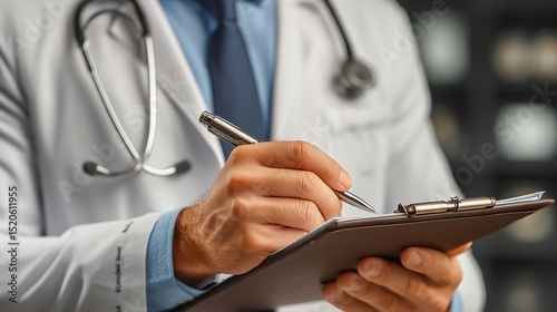 Doctor documenting notes on tablet during medical examination, modern healthcare professional at work