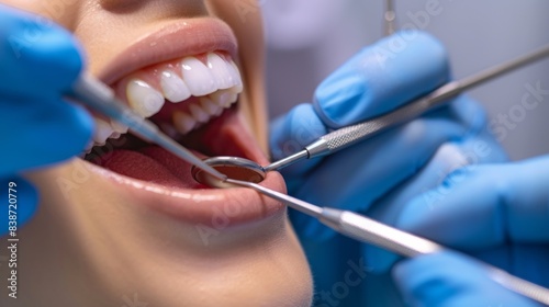 Doctor examining patient's teeth in modern clinic, concept of healthy teeth and medicine.