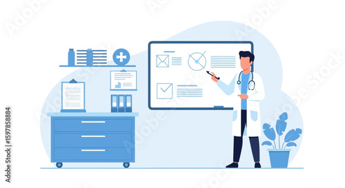 Doctor Explaining Medical Data On Whiteboard In Clinic For Healthcare Professionals