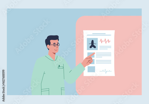 Doctor Explaining Medical Report with Heartbeat and Body Scan