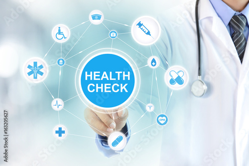 Doctor hand touching HEALTH CHECK sign on virtual screen