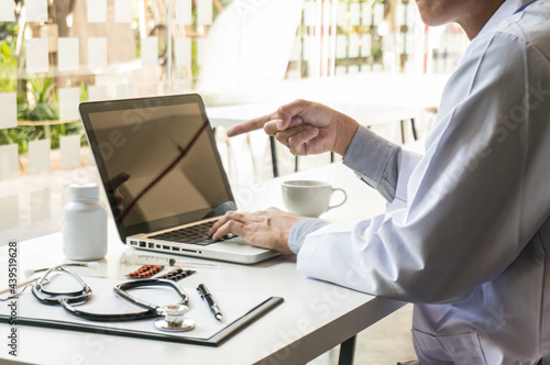 Doctor healthcare. Professional medical doctor in white uniform gown coat interview consulting patient reassuring his male patient helping hand