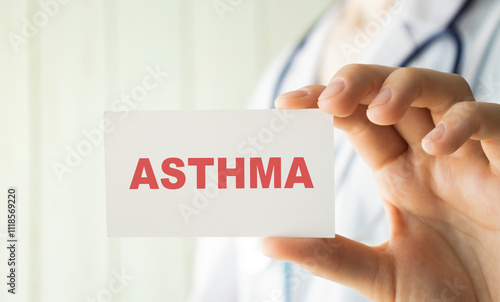 Doctor holding a card with text ASTHMA, medical concept