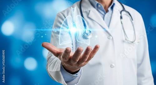 Doctor Holding Hologram of Healthy Human Lungs in Hand - Modern Healthcare Concept