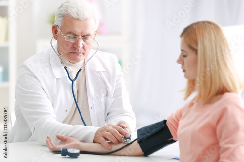 Doctor measuring blood pressure of patient