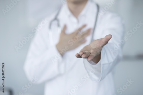 Doctor offering helping hand. Medical help, countering viral infection and medicine concept