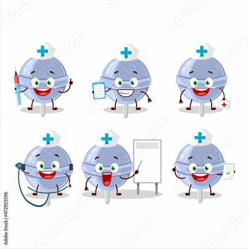 Doctor profession emoticon with sweet blueberry lolipop cartoon character