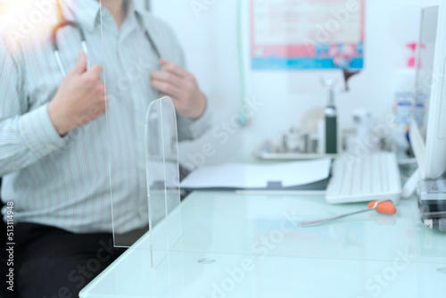doctor sit and work on table in office